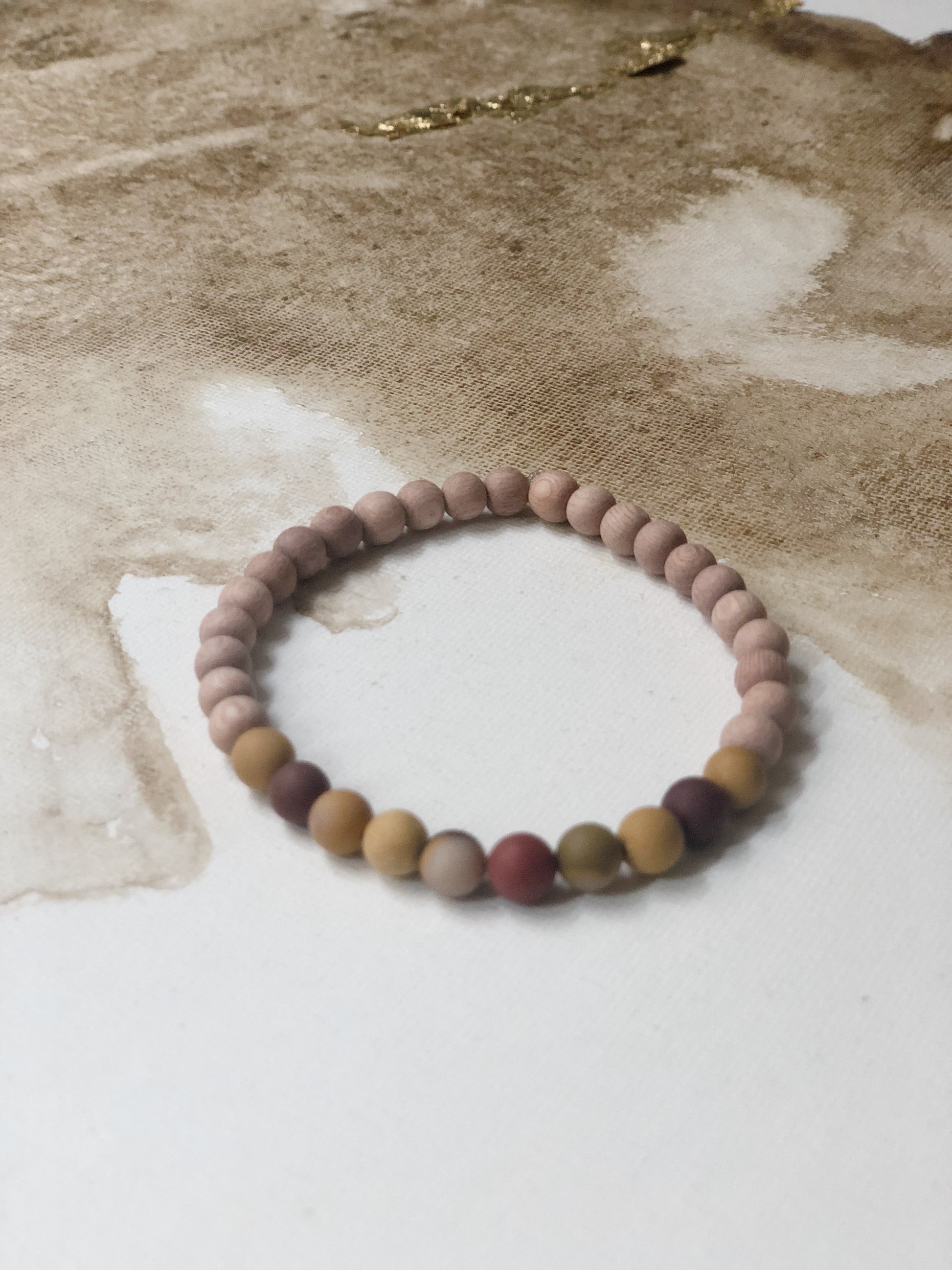 Mookaite Jasper: Shades of ruby, burgundy, yellow, and cream. This is a stone chosen to promote strength, vitality, courage, and physical healing.