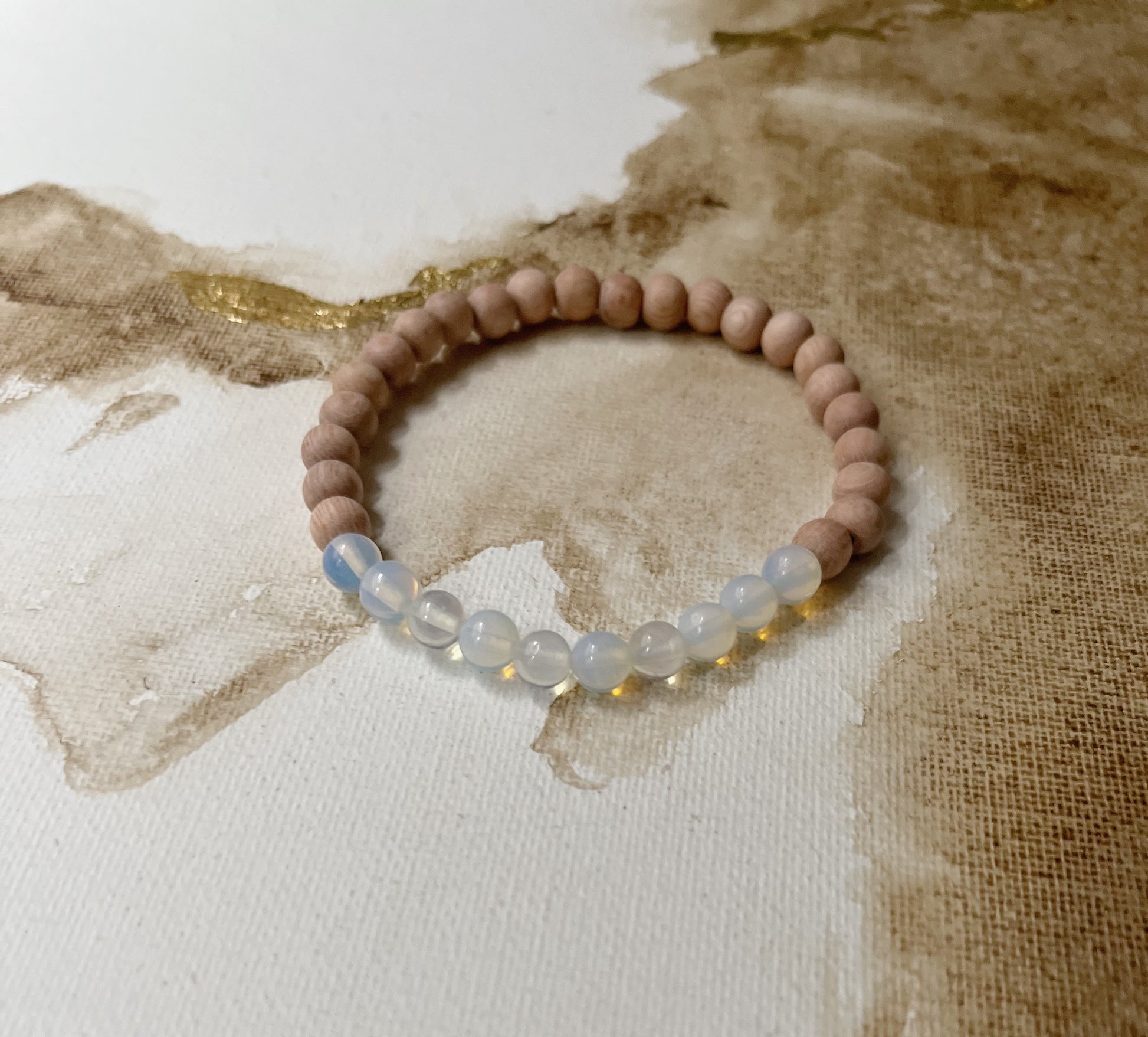 Opalite: Beautifully iridescent crystal, this stone is worn to turn that frown upside down.