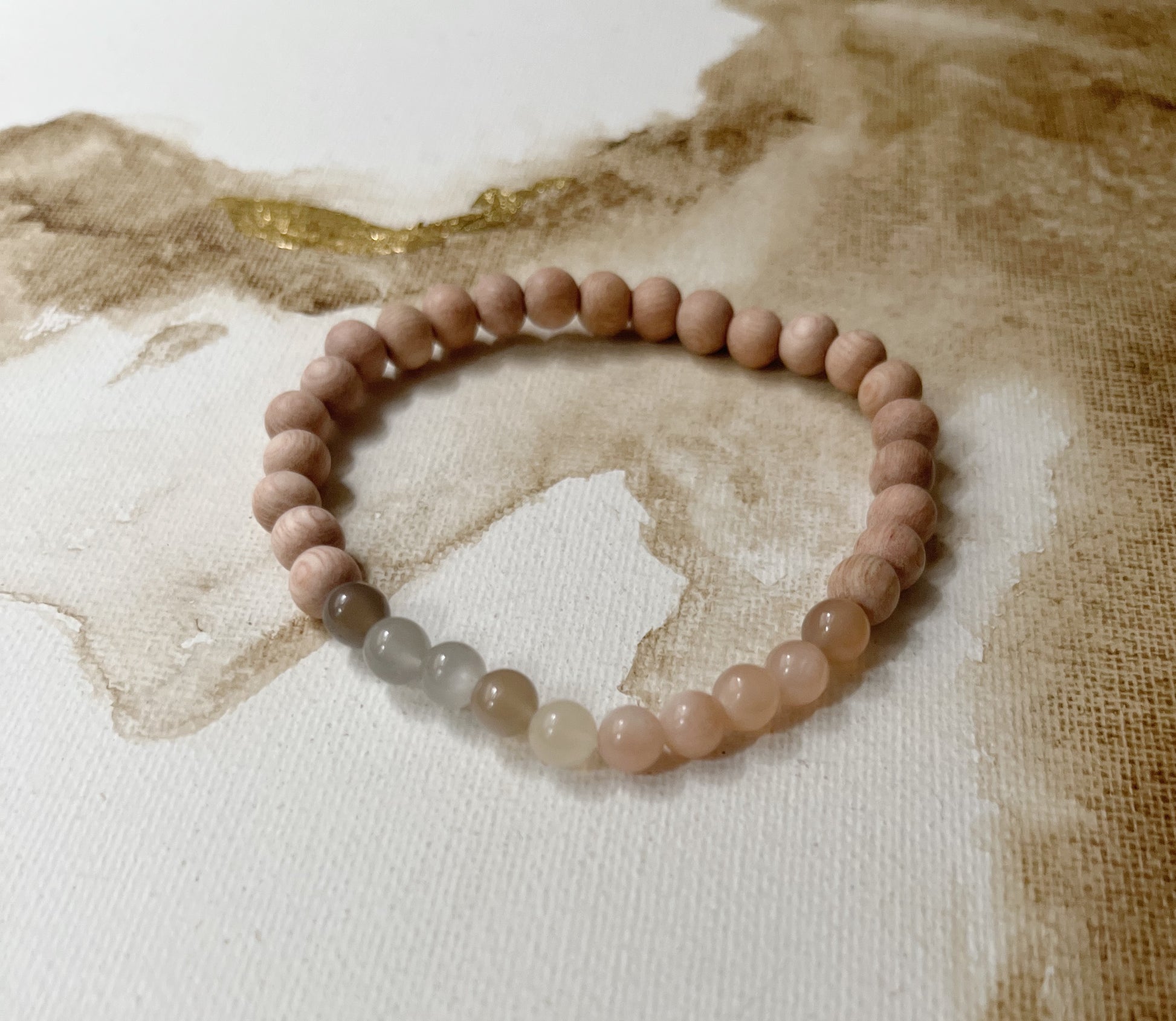 Multi-tone Moonstone- With reflective shades of cream, grey, and peach, this stone is worn to illuminate and chart a clear path forward.