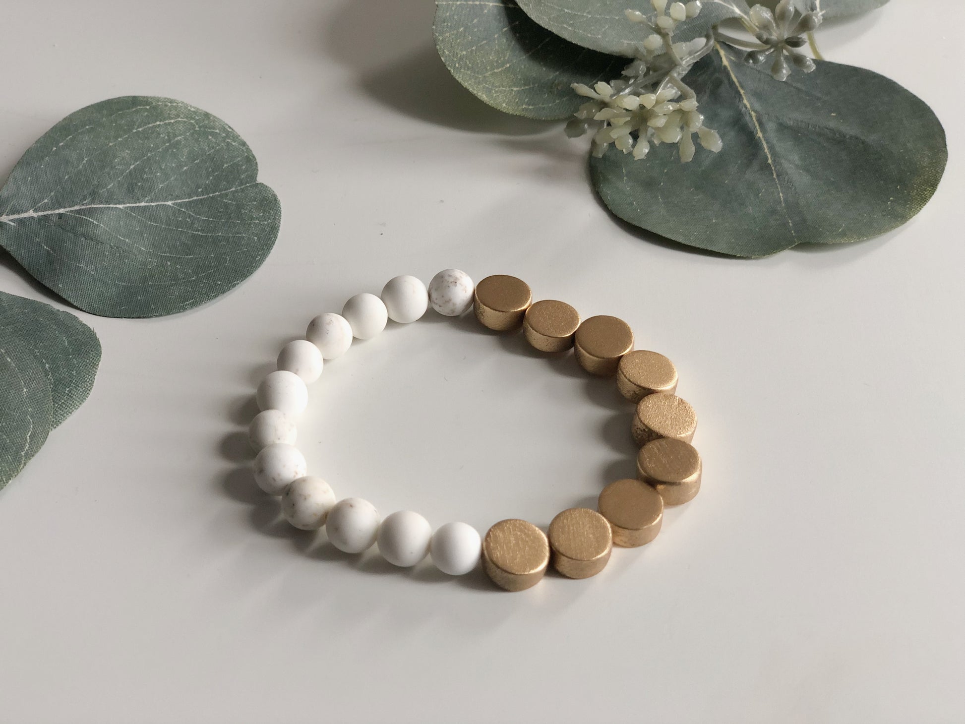 The Cynthia Bracelet has all the things. Gemstones=check. Interesting geometric element=check. White and gold to transition through any season=check. Ability to stand alone or stack fabulously with all of your favorite bracelets=we got you. This is a simple, fun, and stinkin cute addition to your bracelet collection.