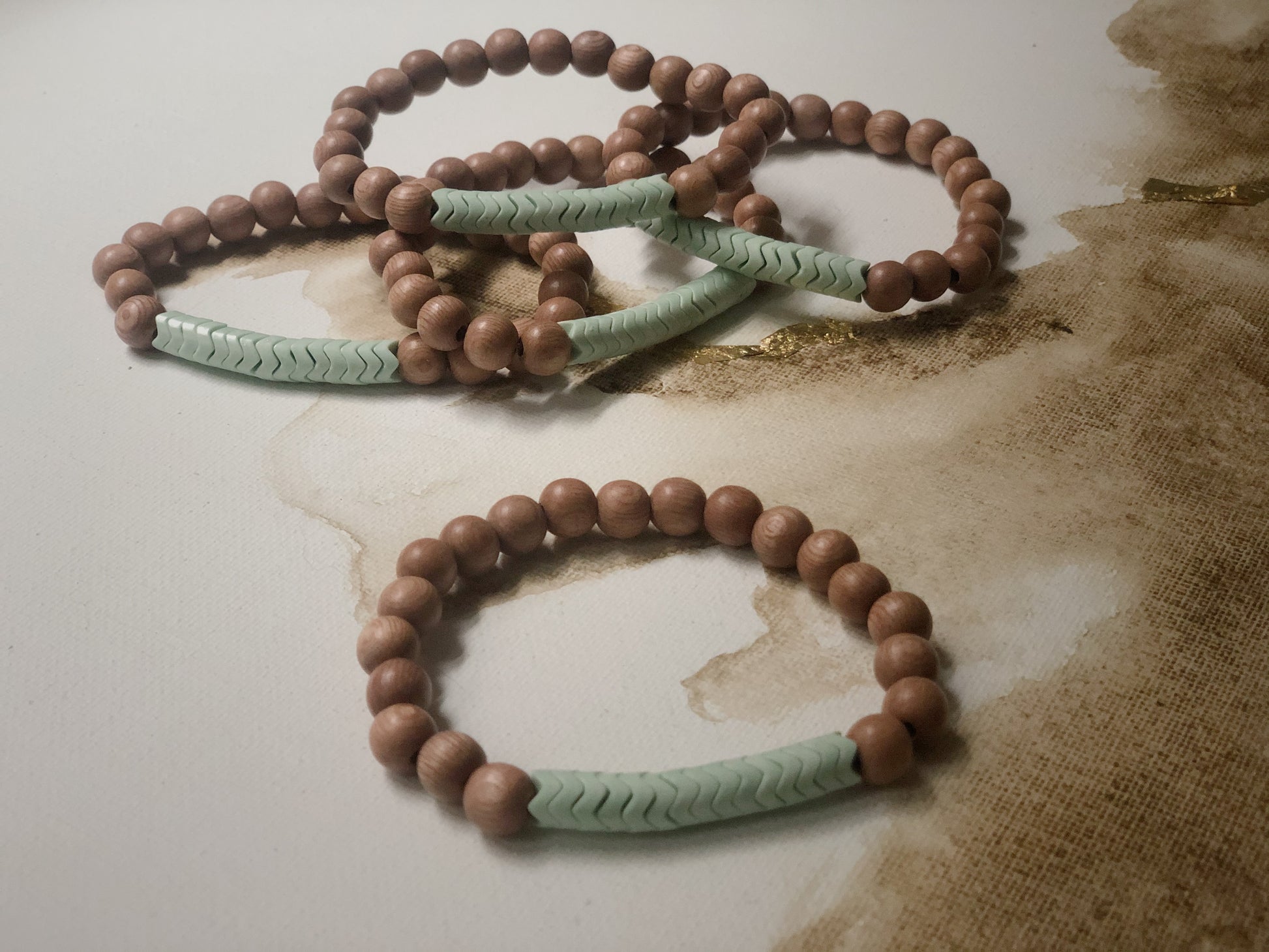 Enjoy this bracelet with your essential oils by dropping 3-5 drops on the wood beads 5 minutes before wearing.