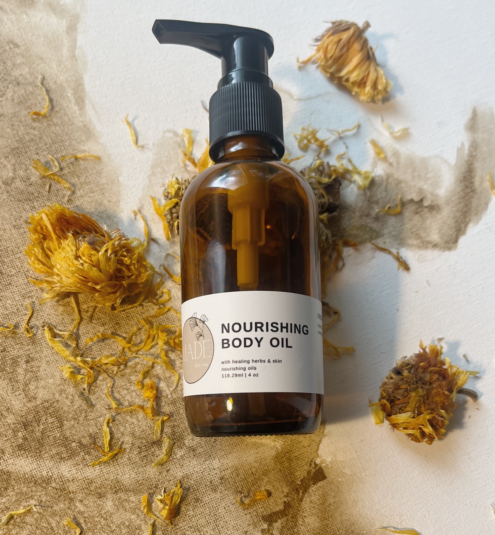 A carefully balanced blend of apricot and almond oils infused with calendula nourish and help recover your youthful, healthy skin. Apricot oil helps to improve skin tone, maintain softness and radiance of skin while it also lowers the appearance of face wrinkles, fine lines and blemishes (that's the Vitamin C and E working in partnership). Almond oil reduces puffiness, improves complexion, and evens skin tone while also turning back the clock on sun damage and the appearance of scars and stretch marks. And nature’s fairy dust, Calendula. In the short term, the nourishing benefits of calendula help to plump the surface of your skin to give you tighter, more supple skin almost instantly. In the long term, both the anti-inflammatory and antioxidant properties help to protect your precious collagen and elastin supply. Calendula helps with redness and inflammation of all types. And when you combine all three ingredients, you have an amazing Nourishing Body Oil that cares for your skin as nature intended.