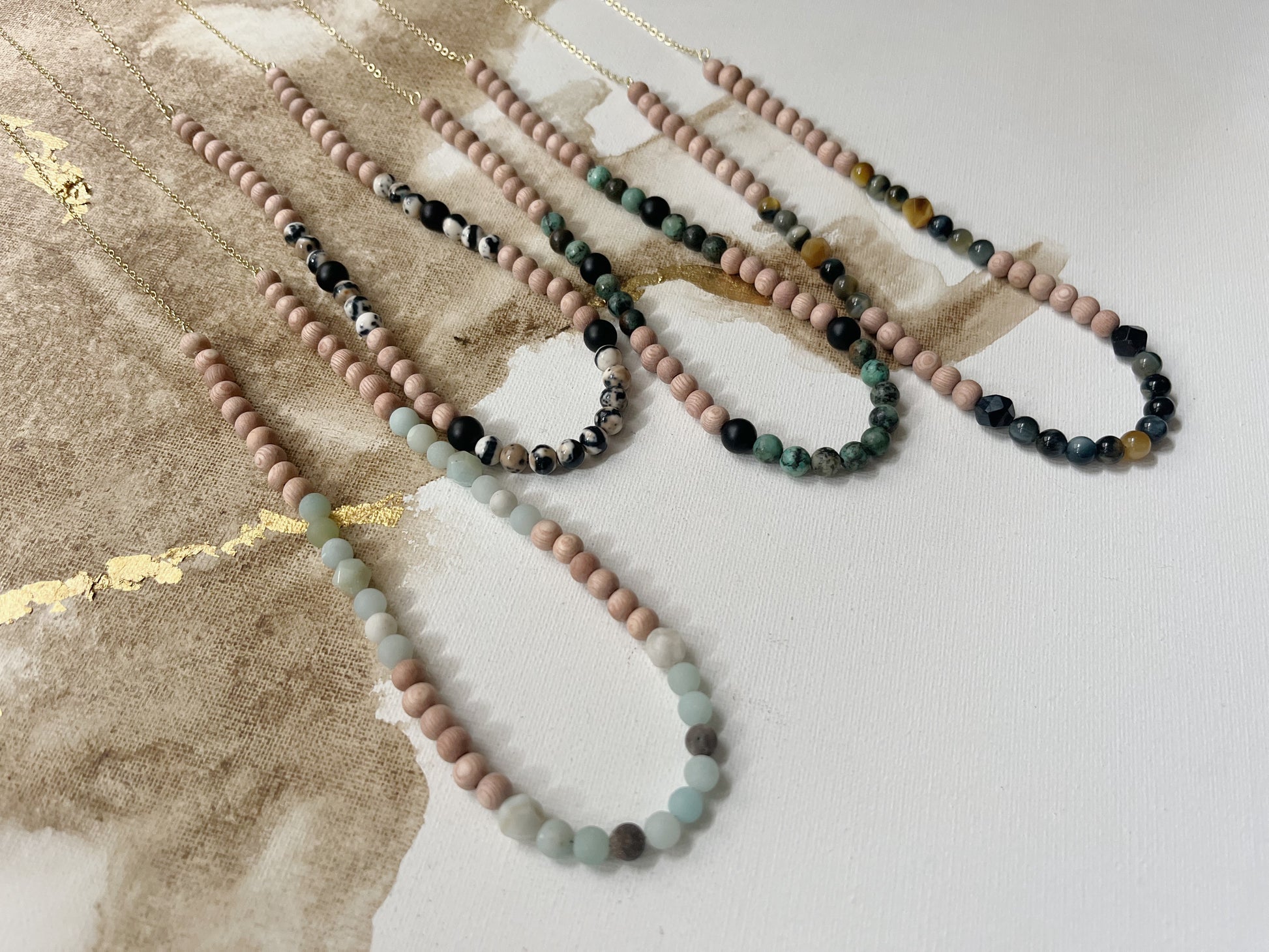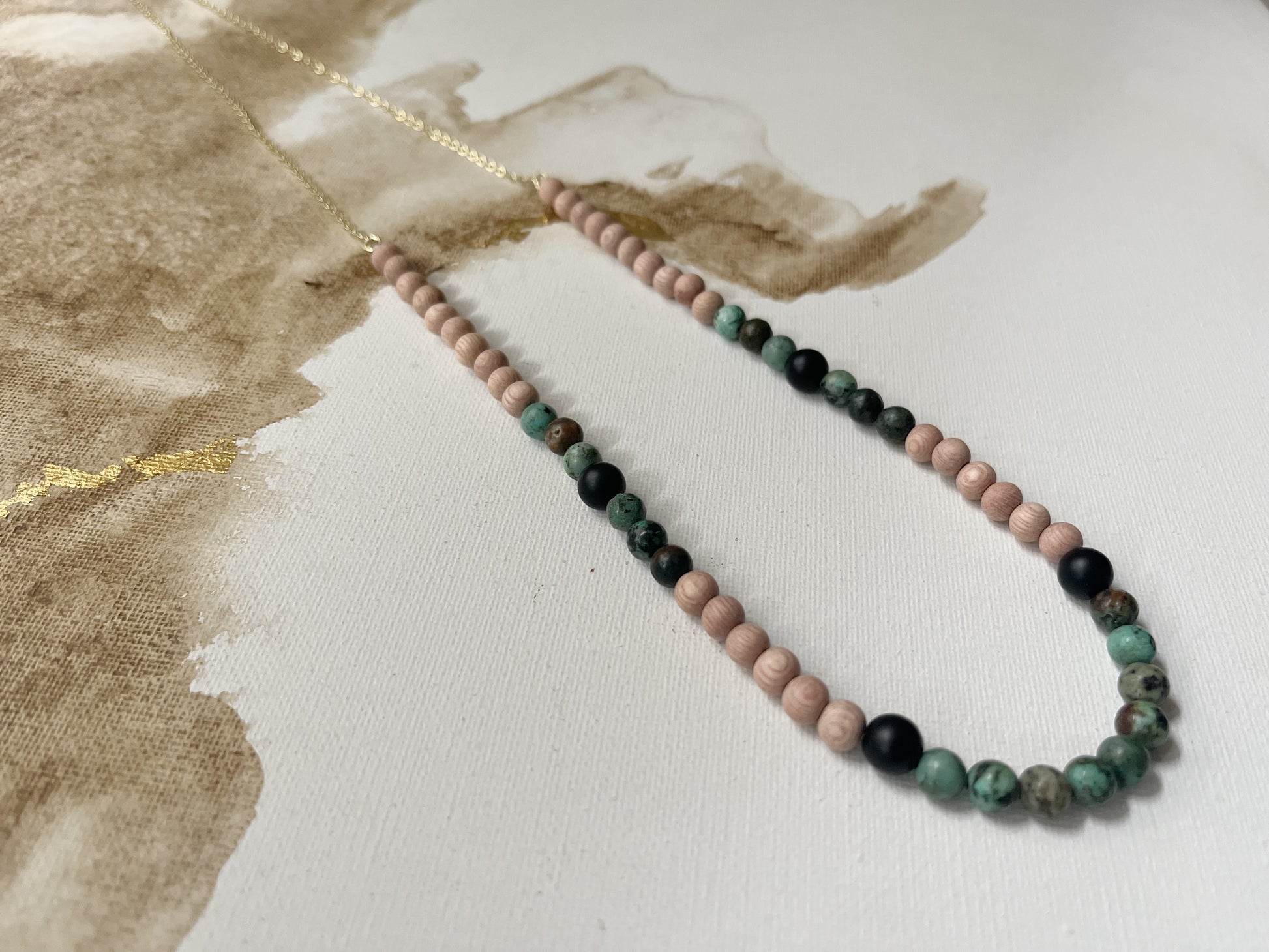And you can't go wrong with either gemstone choice- Amazonite, Rainflower Stone, African Turquoise, & Golden Blue Tiger's Eye look great with every skin tone and are easily neutral in their own right.